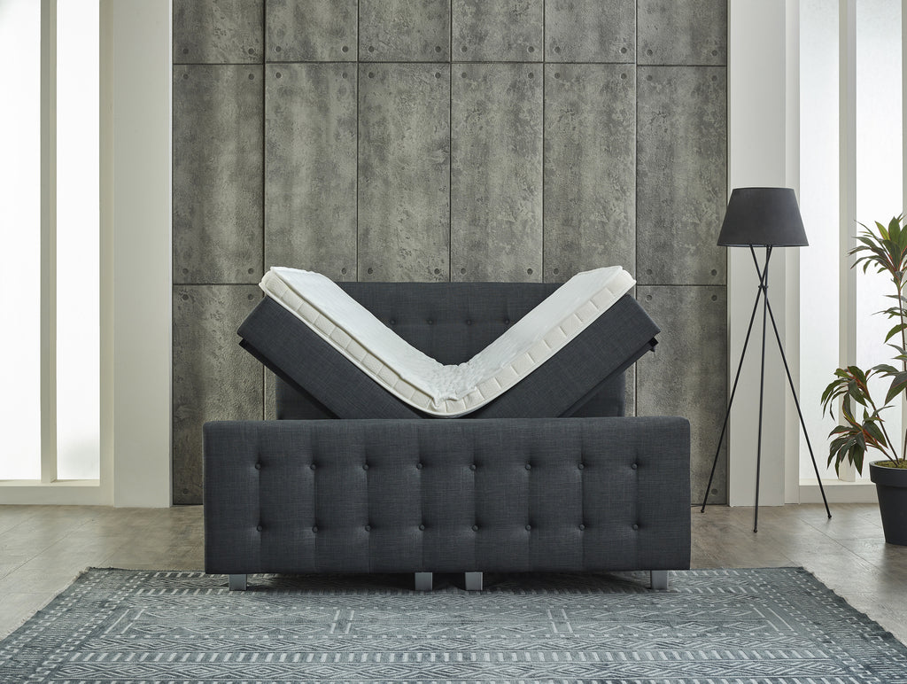 1 complete boxspring (headboard, base, mattress) Brand: Dreamhouse Model: Shurgard Color: Anthracite Size: 140x200 cm Length: 200...