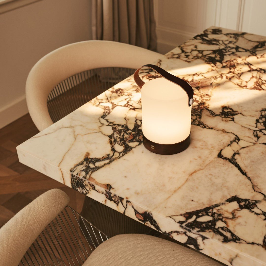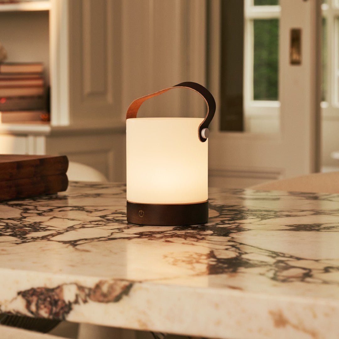 Avery donkerbruin draadloos en dimbaar met lederen band Stijlvol model: de Avery Dark Brown-oplaadbare houten tafellamp combineert...