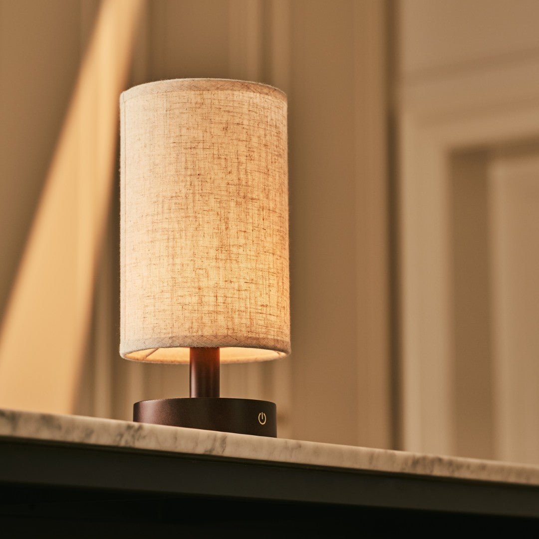 Ben donkerbruine houten tafellamp-oplaadbaar, dimbaar, USB-C aangedreven