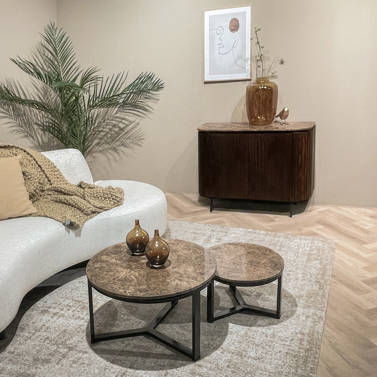 Discover the refined elegance of the Nora Emperador. A luxurious sideboard featuring durable hardwood in a warm...