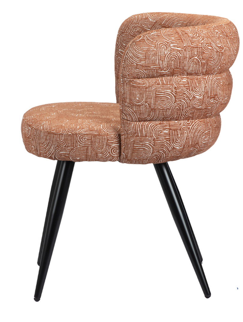 De Cloud Safiya Terracotta past uitstekend bij verschillende interieurstijlen en brengt een levendige, warme sfeer in je eetruimte. Combineer met een houten eettafel voor een mediterrane look, of met een strakke tafel voor een modern contrast. De warme terracotta tinten gecombineerd met het zwarte frame geven je eethoek direct een authentieke en comfortabele uitstraling. Perfect voor mediterrane, Scandinavische of moderne interieurs.