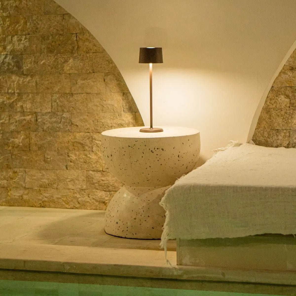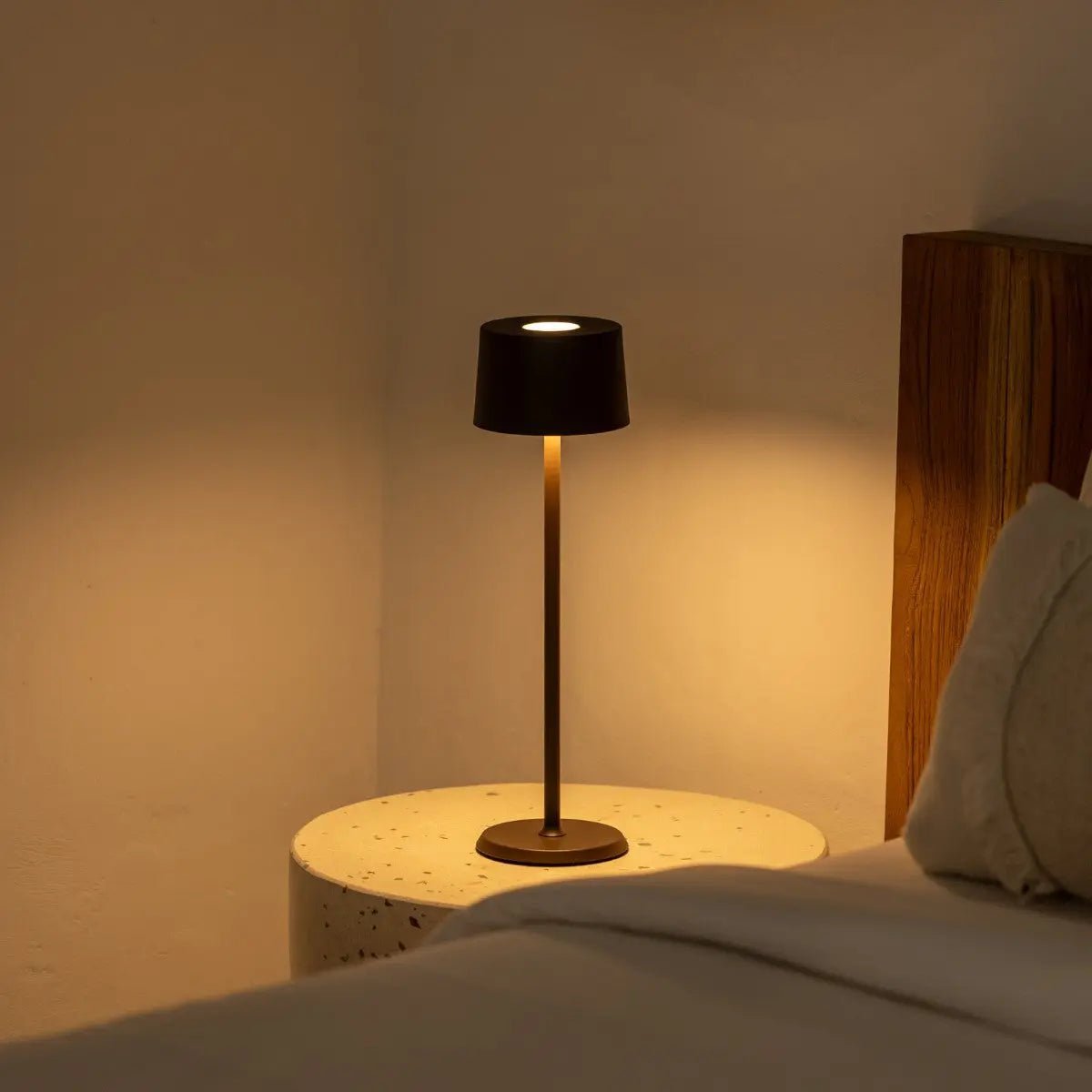David Mocha Brown oplaadbare ijzeren tafellamp – dimbaar en draadloos met 120 uur batterij