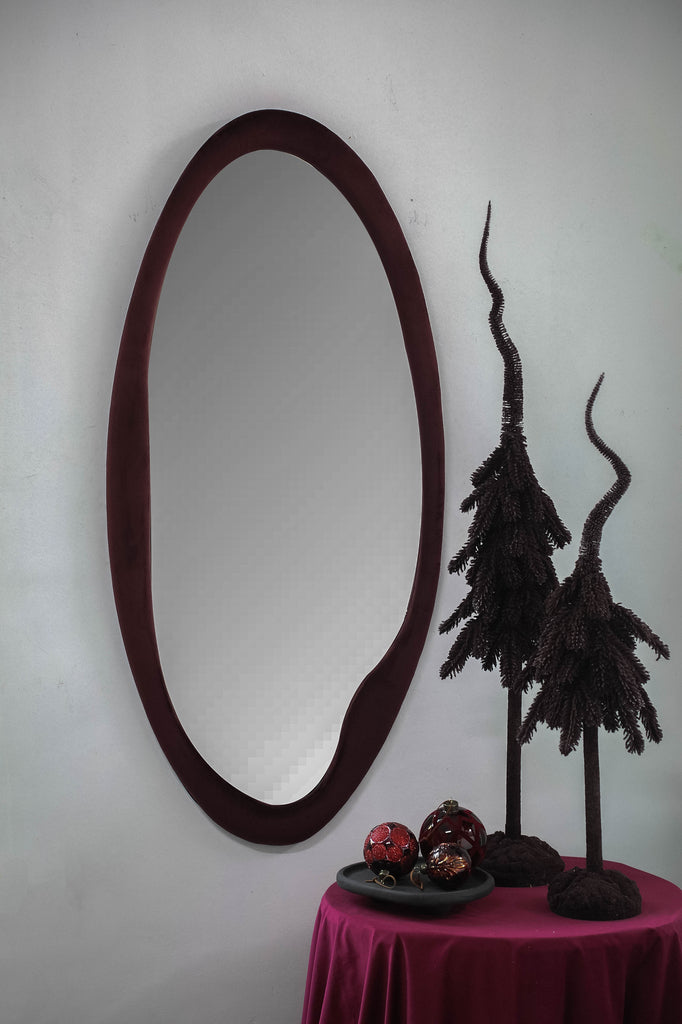 Don espejo orgánico ovalado de terciopelo burdeos L.