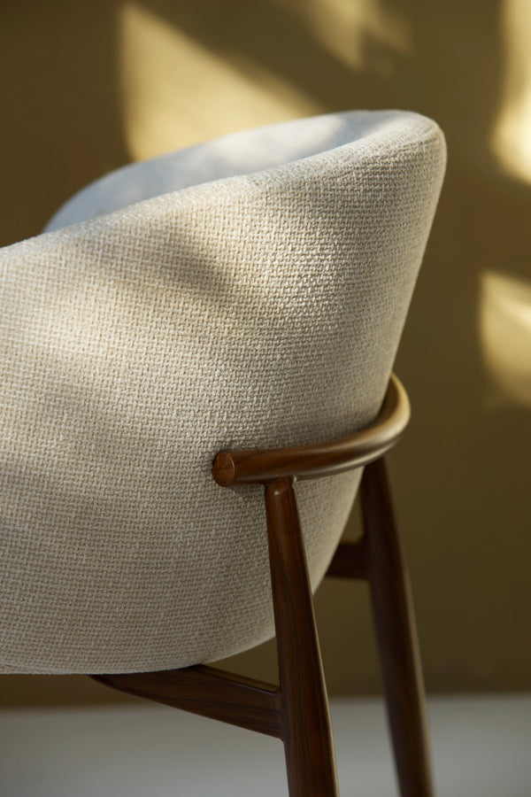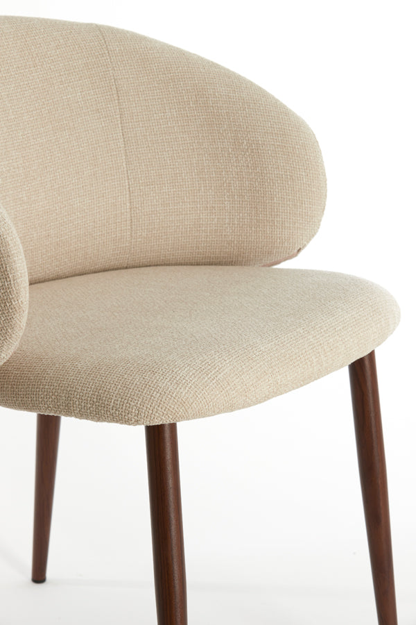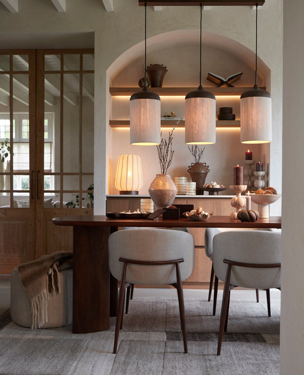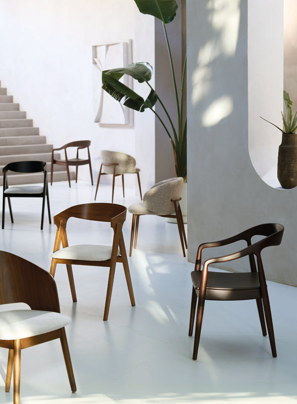 Combineer de Aluko stoel met natuurlijke materialen zoals hout en linnen voor een warme, organische look. Perfect te combineren met een houten eettafel en zachte texturen voor een gezellige eethoek met een luxe uitstraling.