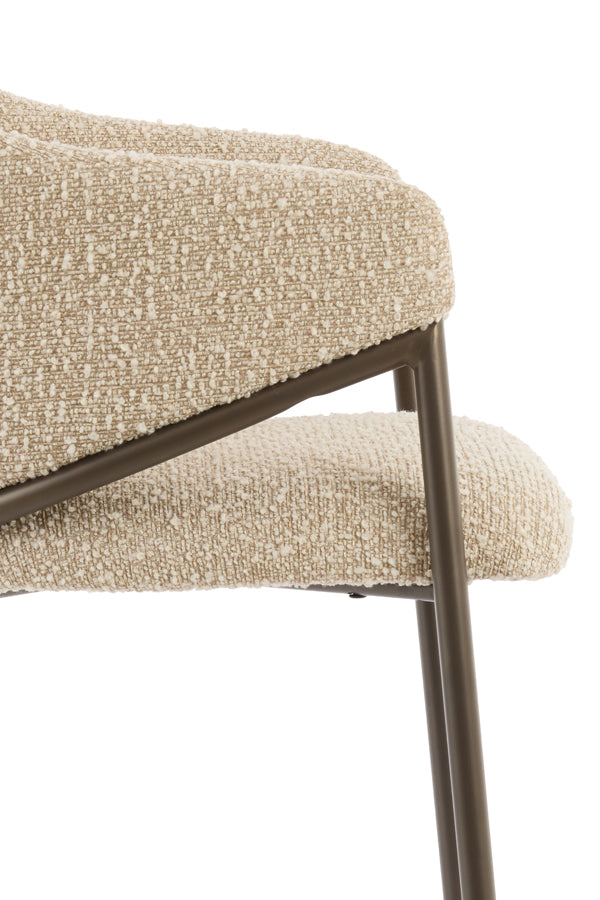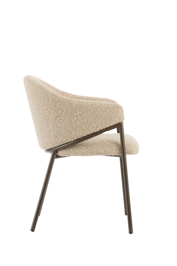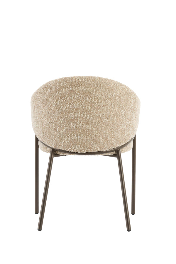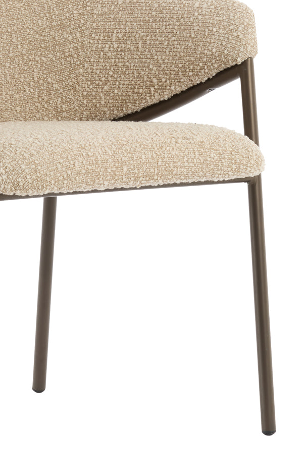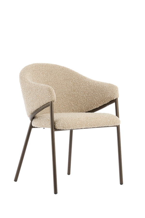 Combineer de Nyro stoel in zandbruin met natuurlijke materialen zoals hout, rotan en linnen voor een warme, organische look. Perfect te combineren met een houten eettafel en zachte texturen voor een gezellige eethoek met een natuurlijke uitstraling.