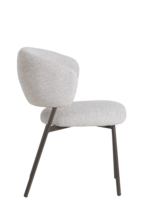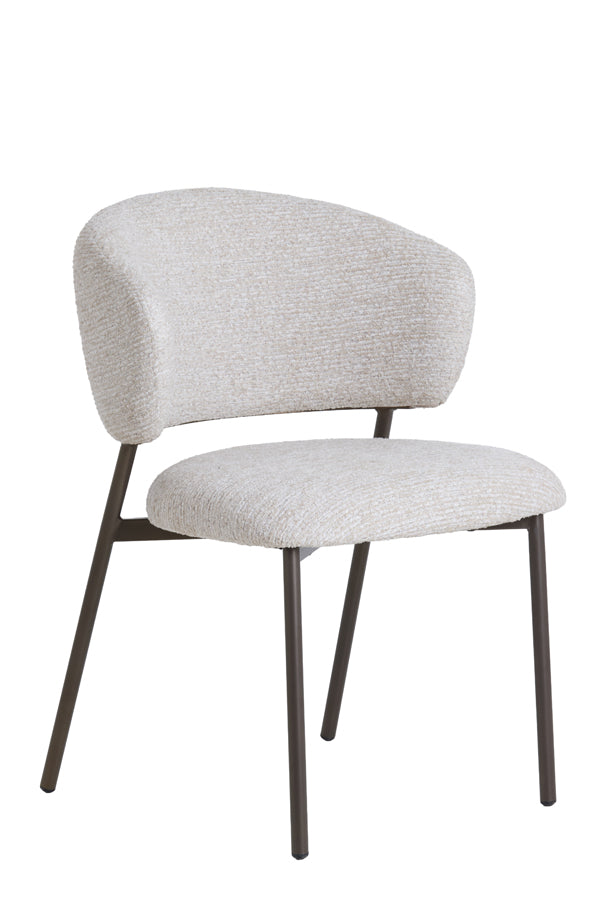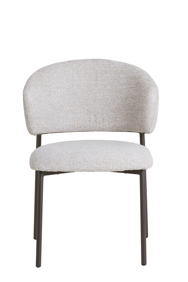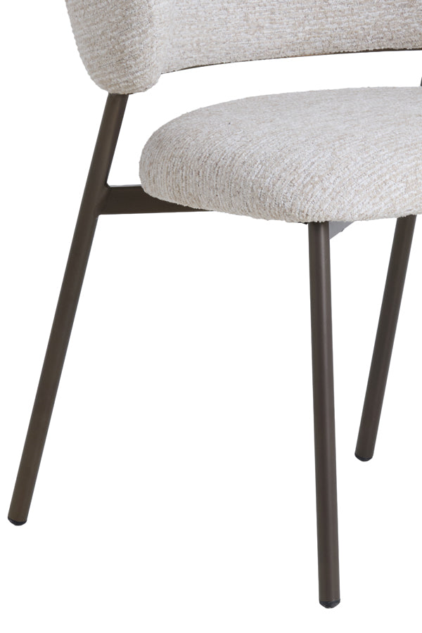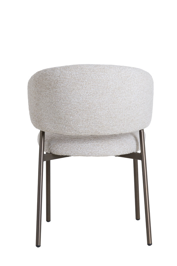 Voeg een vleugje verfijning toe aan je eetkamer met de Tibalt eetkamerstoel in beige met antique bronze afwerking van