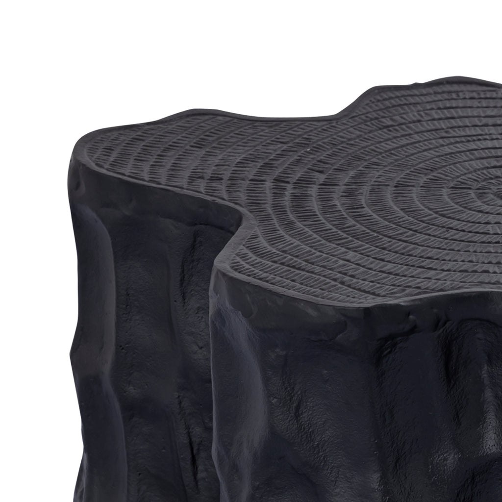 Fennah Black matte aluminum side table in a tree wood design.