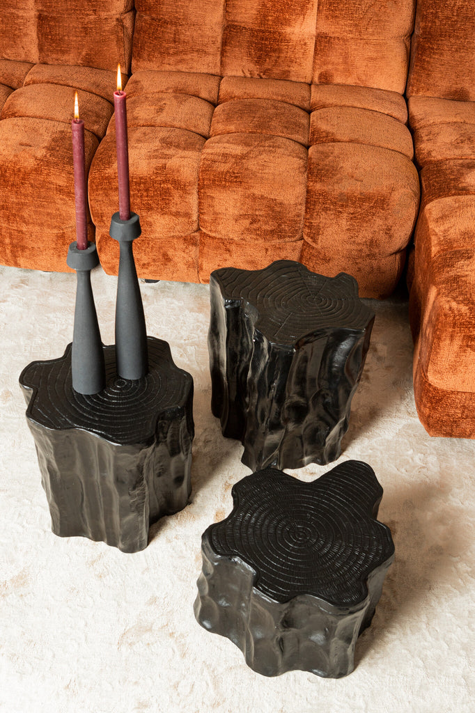 Fennah Black matt aluminum side table in tree wood shape S