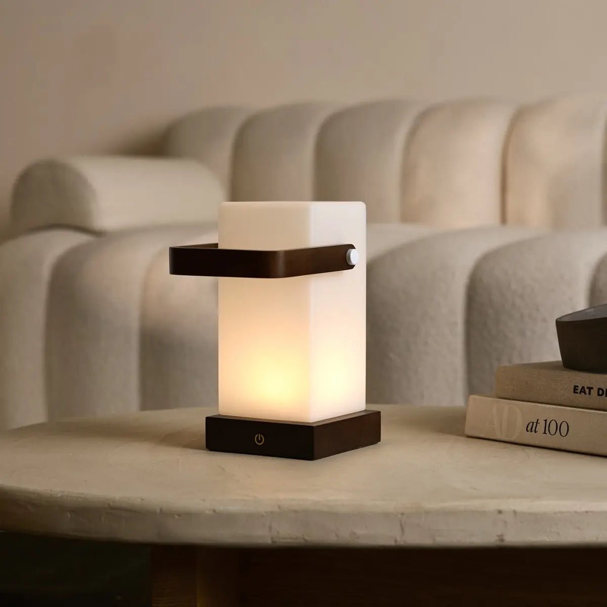 Harper Donkerbruine Houten Lamp – Snoerloze Oplaadbare Tafellamp met Handvat