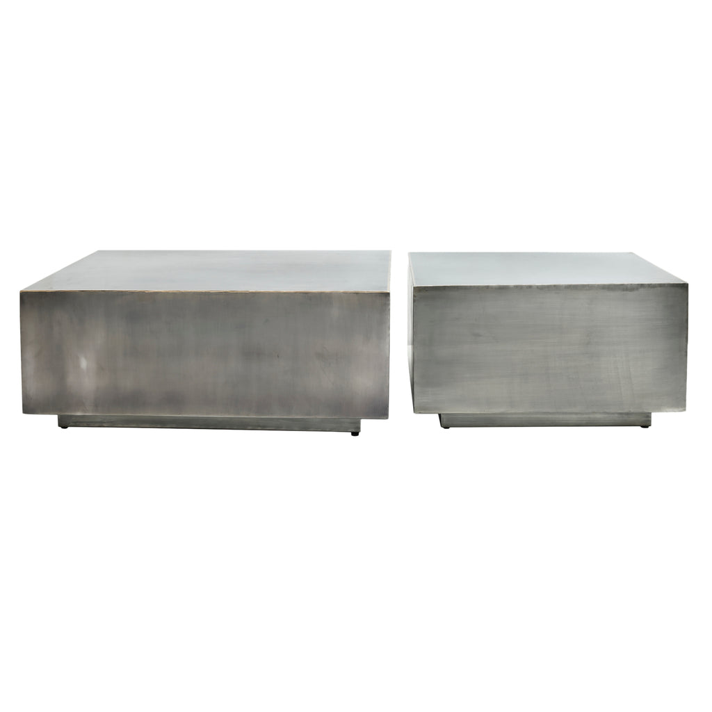 Irvy Niquel mesa de café de hierro cuadrada con borde dorado.