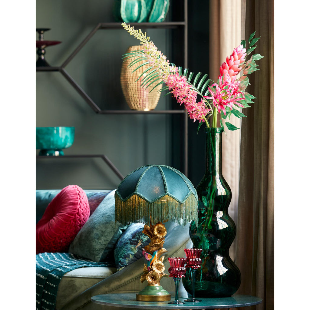 Vintage lampshade in green velvet with fringes at the bottom. Add a touch of retro to your...