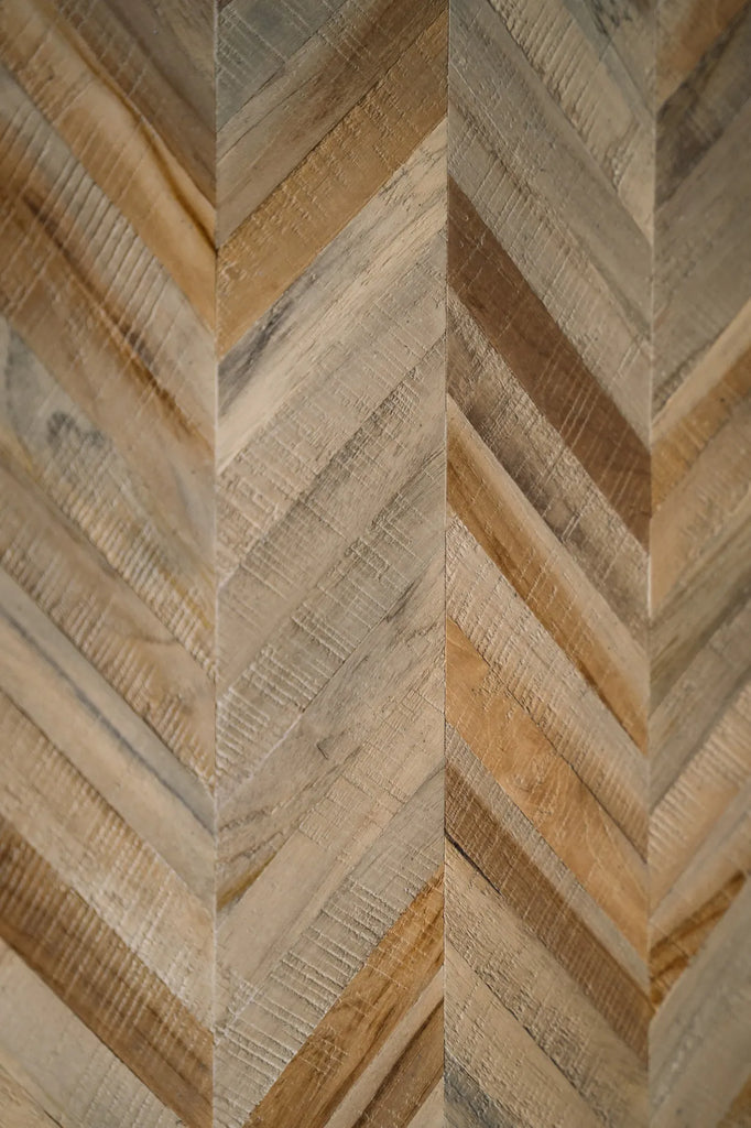 This high-quality bench is crafted from teak wood in an elegant herringbone pattern with black iron accents....