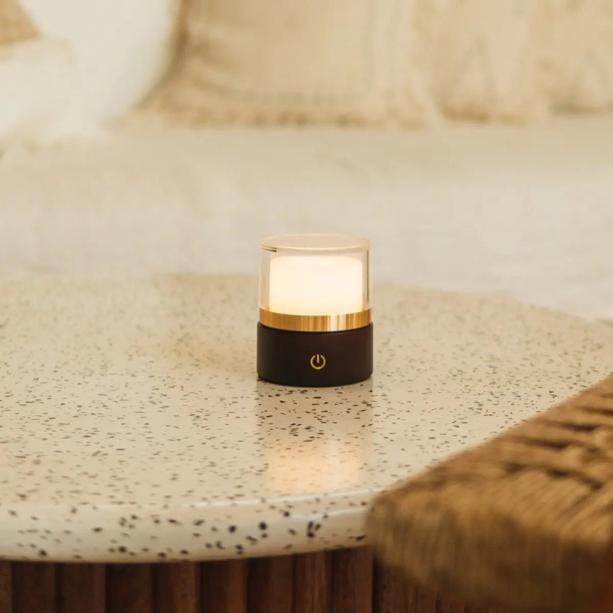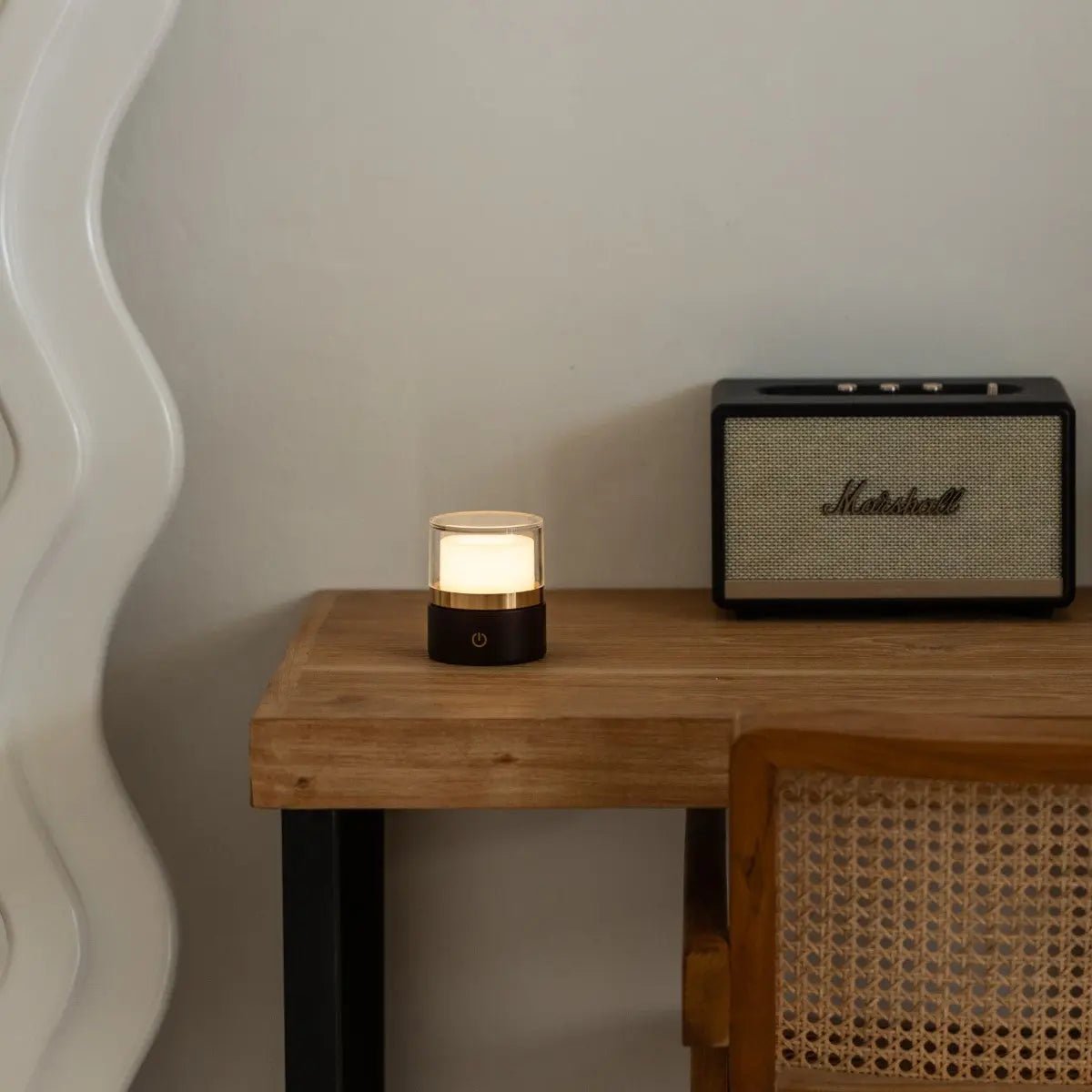 Leo donkerbruine compacte draadloze oplaadbare lamp – natuurlijk hout, dimbaar licht