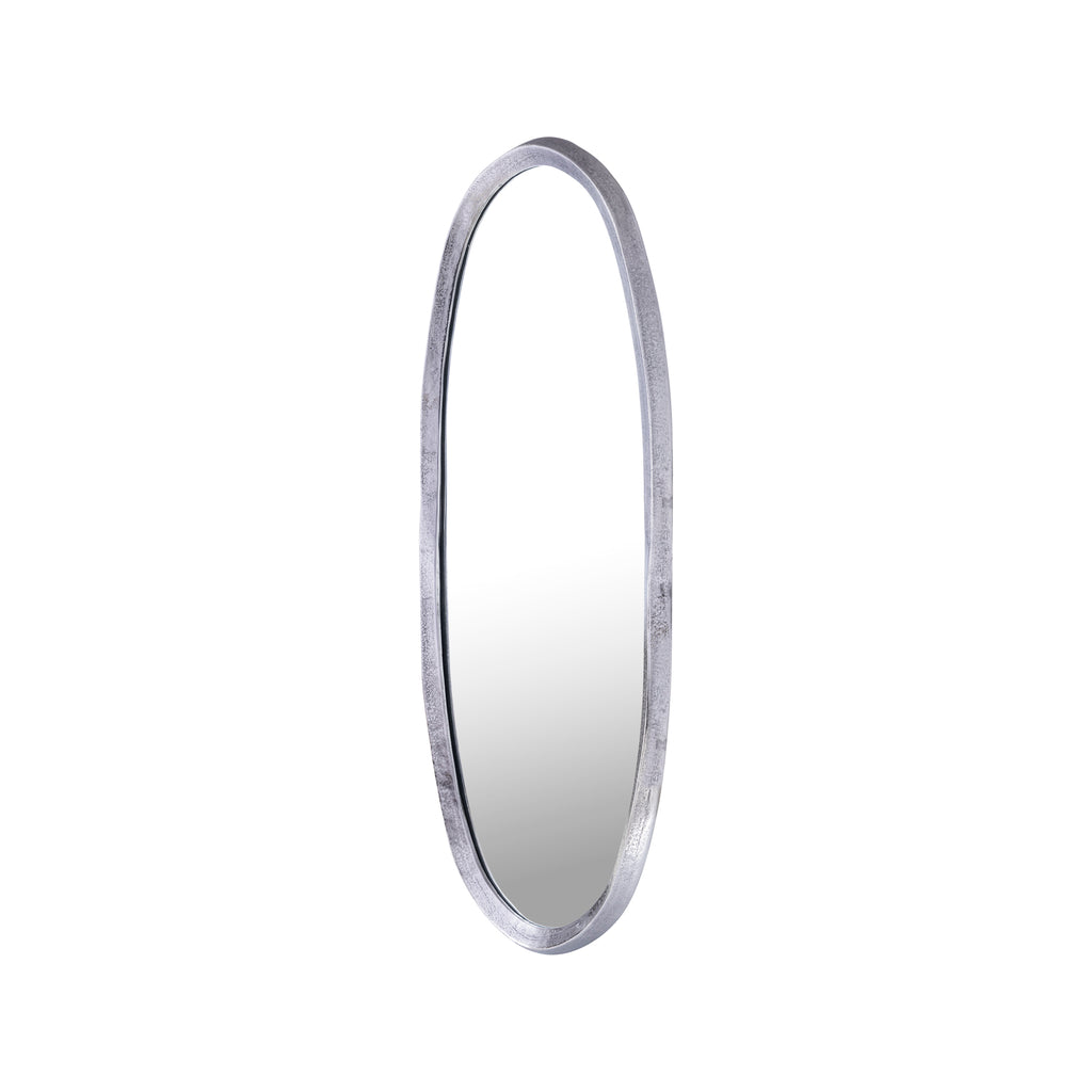 Limera Espejo ovalado de níquel aluminio con borde irregular.