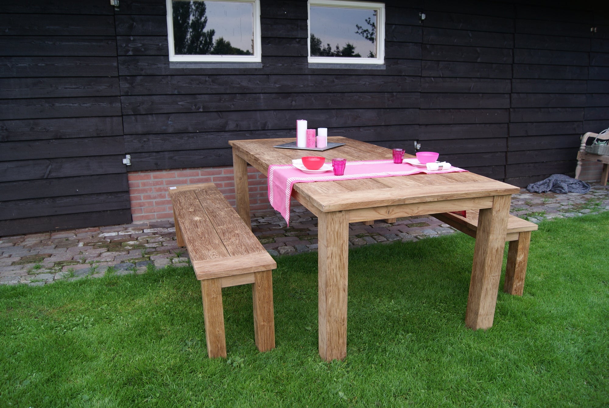 Create a warm atmosphere in your garden with the dining table Evoy from Livingfurn. This beautiful teak...