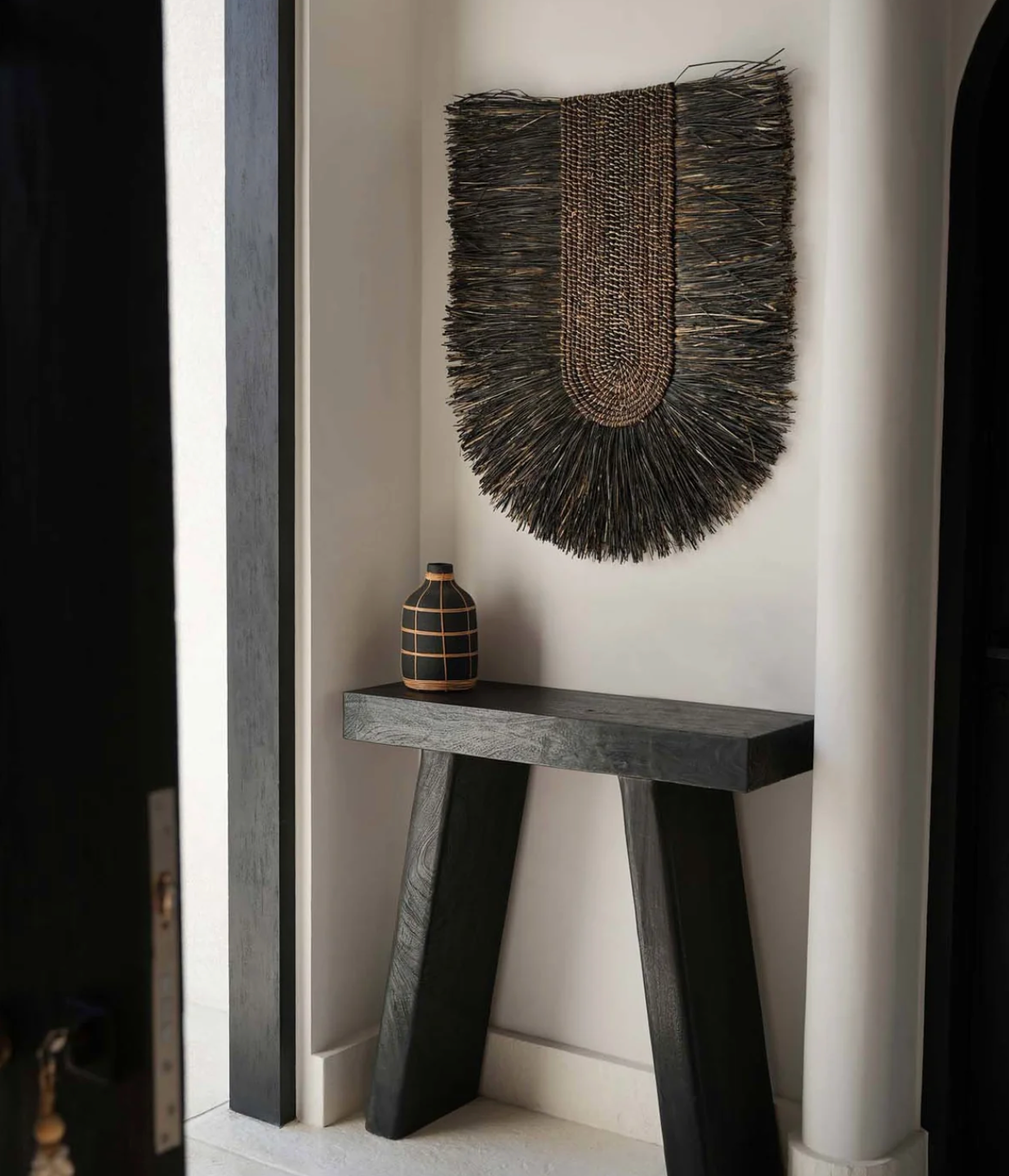 Geïnspireerd door Dada kunst brengt dit unieke decoratiestuk artistieke flair in elke ruimte met zijn organische textuur. Perfect voor moderne en bohemian interieurs, voegt deze muurdecoratie van gedroogd gras een natuurlijke en kunstzinnige touch toe aan je wanden. De combinatie van zwart en naturel kleuren zorgt voor een verfijnde uitstraling die zowel opvalt als harmonieus aanvoelt.