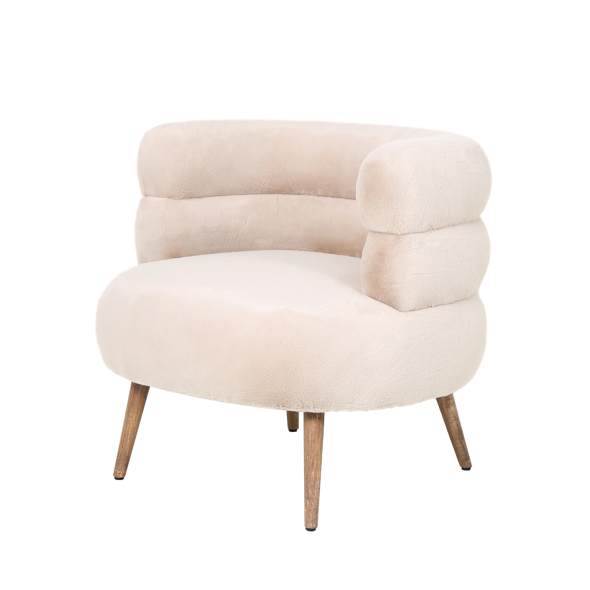 Een elegante fauteuil die tijdloos design en zacht zitcomfort combineert. De Nelly met zijn beige stoffen bekleding en luxe afwerking van imitatiebont biedt een warm en uitnodigend zitoppervlak. Het comfortabele schuimvulling zorgt voor optimaal comfort, terwijl het stevige houten frame geschikt is voor dagelijks gebruik in woonkamer en ontspanningsruimtes.