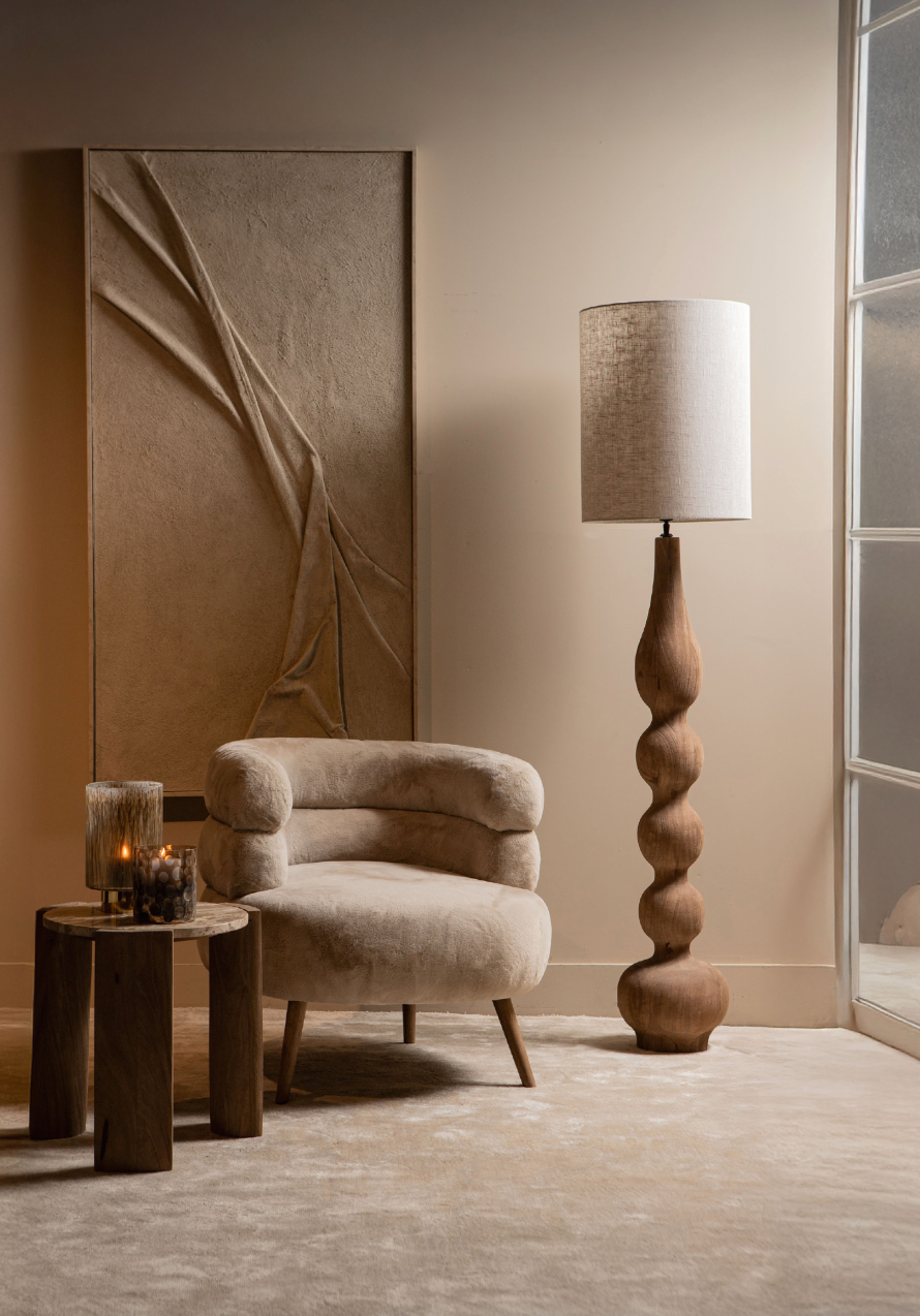 De Nelly fauteuil met zijn zachte beige tinten en bontafwerking voegt warmte en textuur toe aan elk interieur. Perfect voor een gezellige leeshoek in de woonkamer, gecombineerd met een vloerlamp en bijzettafel. Ook prachtig in de slaapkamer als comfortabele zitplek. Combineer met zachte kussens in neutrale tinten voor een luxe uitstraling.