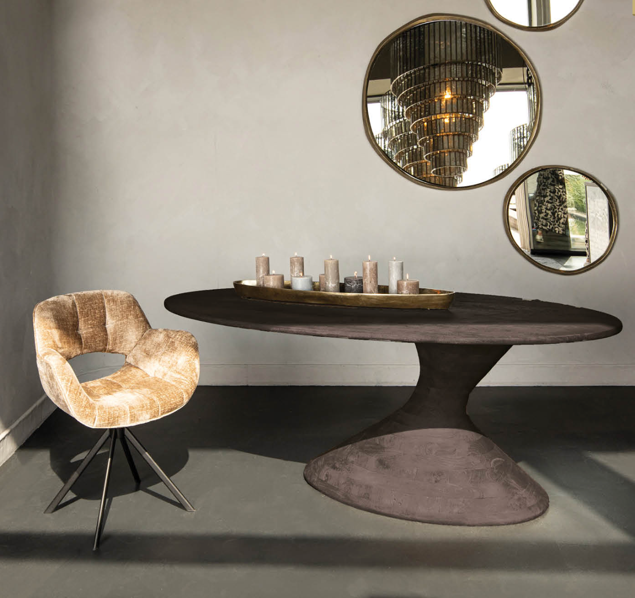 Een eettafel die organische vormen en natuurlijke materialen op prachtige wijze samenbrengt. De Nemo van PTMD is volledig vervaardigd uit mangohout met een elegante grijze afwerking die warmte en verfijning uitstraalt. Het ovale tafelblad biedt comfortabel plaats aan 4 personen en rust op een uniek rond onderstel dat de tafel een sculpturale uitstraling geeft. Met zijn royale afmetingen van 150 cm is deze eettafel het perfecte middelpunt voor gezellige diners, waar functionaliteit en design hand in hand gaan.