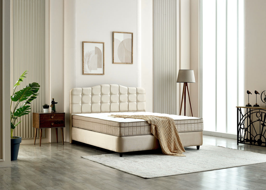 What is included? 1 complete boxspring (headboard, base, mattress) Brand Dreamhouse Model Marrakech Velvet Color Beige Size...
