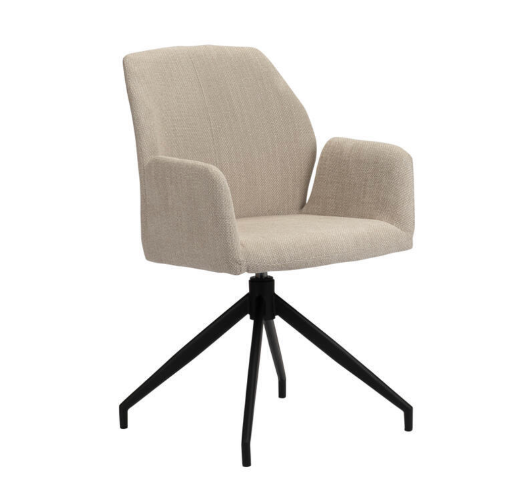 Een draaistoel die modern design en uitzonderlijk comfort moeiteloos combineert. De Storm Draaistoel van Pole To Pole heeft een 360 graden draaifunctie die automatisch terugkeert naar de oorspronkelijke positie, wat zorgt voor gebruiksgemak en een nette uitstraling. De ergonomische rugleuning en gevoerde zitting bieden uitstekende ondersteuning, terwijl het stevige metalen frame en de zwart gepoedercoate stalen poten zorgen voor stabiliteit en duurzaamheid.