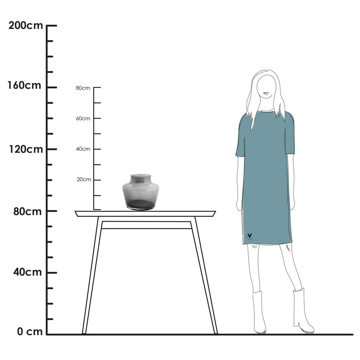 Glazen vaas Coral grey Ø22,5 x H22 cm is een mondgeblazen vaas.