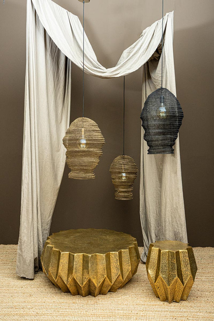 Viya Gold aluminum coffee table de baixa largura e ângulos baixos.