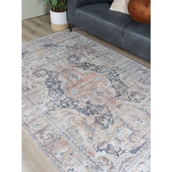Het design van vloerkleed Mahal is geïnspireerd op de klassieke, versleten prints van oude vintage vloerkleden uit...