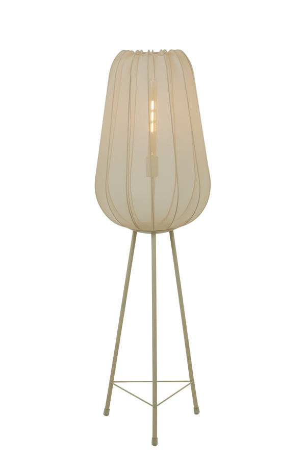 Een vloerlamp die warmte en stijl combineert. Light & Living creëert sfeervolle verlichtingsoplossingen met oog voor detail en hoogwaardige materialen. Vloerlamp Plumeria is uitgevoerd in zandkleurig metaal met een driepoot onderstel en ronde vorm, wat zorgt voor een warme en eigentijdse uitstraling.