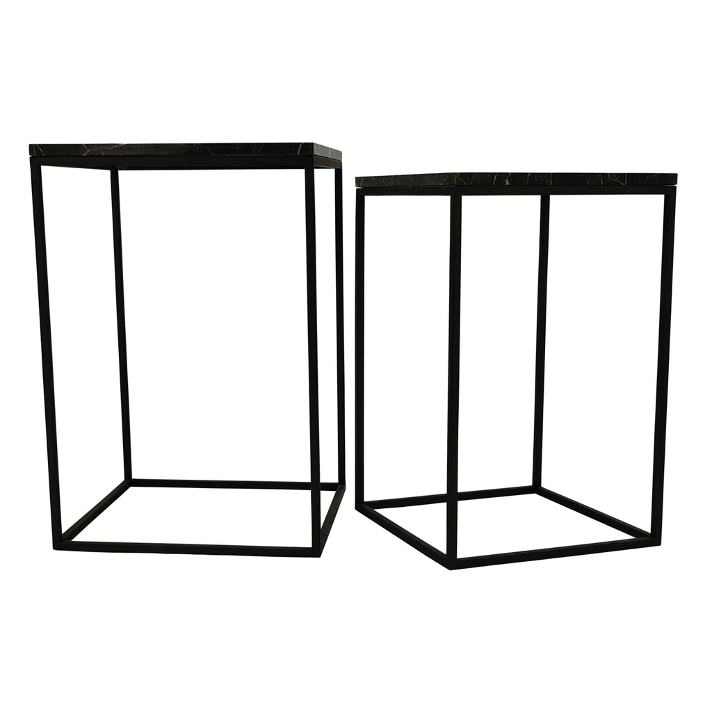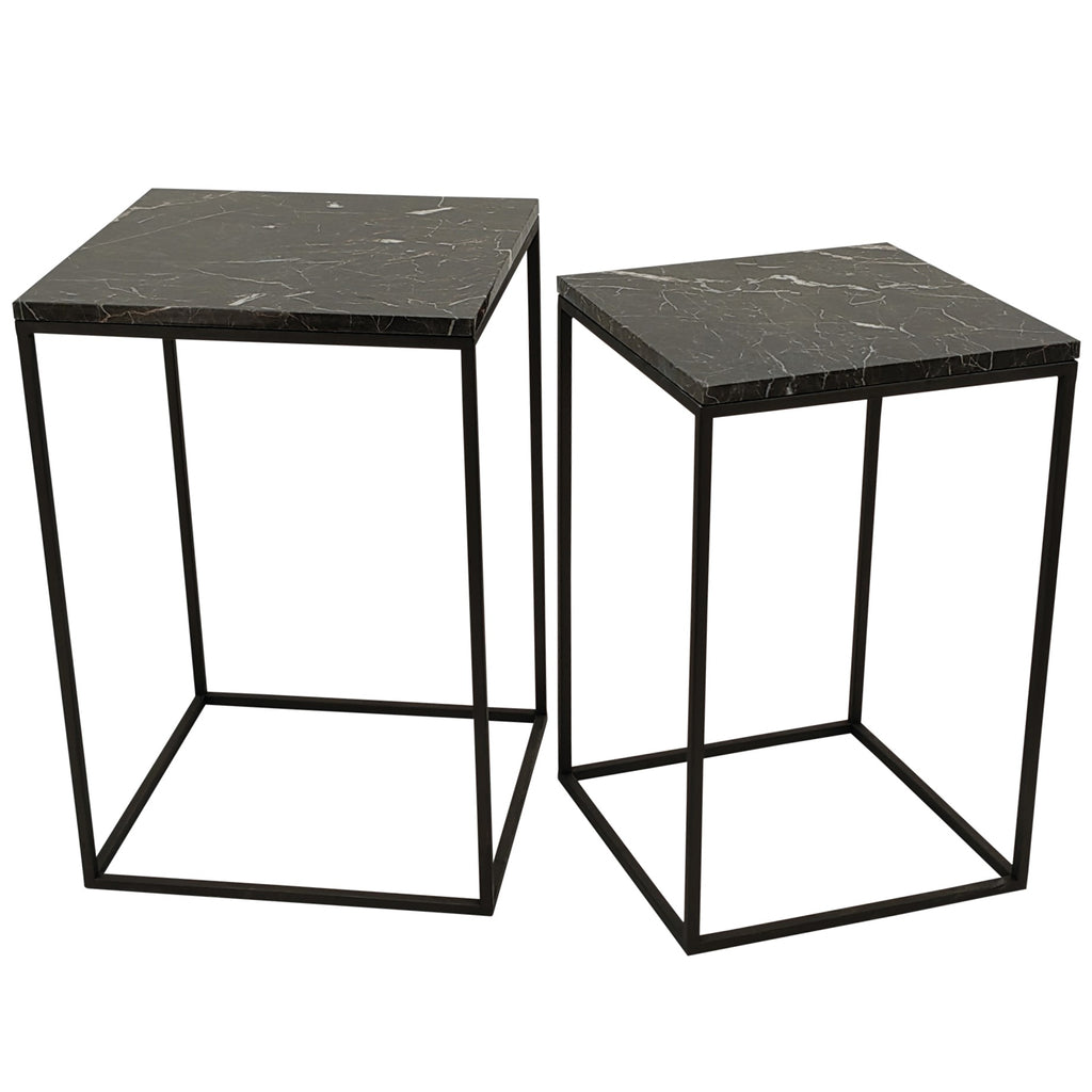 Volos ensemble de 2 tables d'appoint en marbre brun