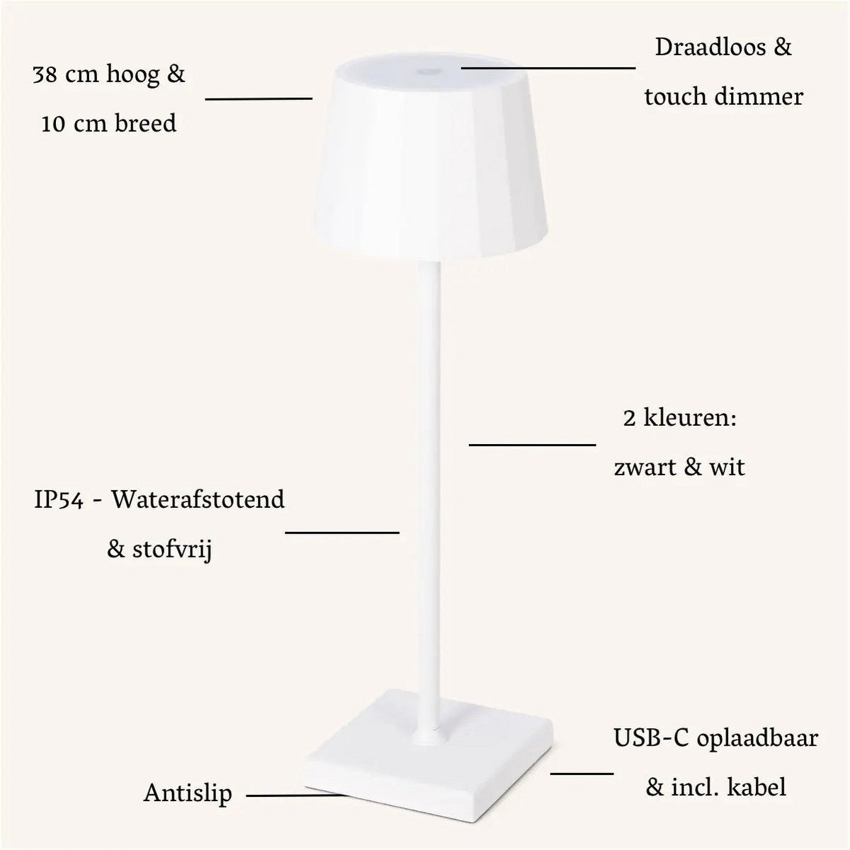 William White oplaadbare tafellamp – draadloos, dimbaar, batterijduur van 120 uur