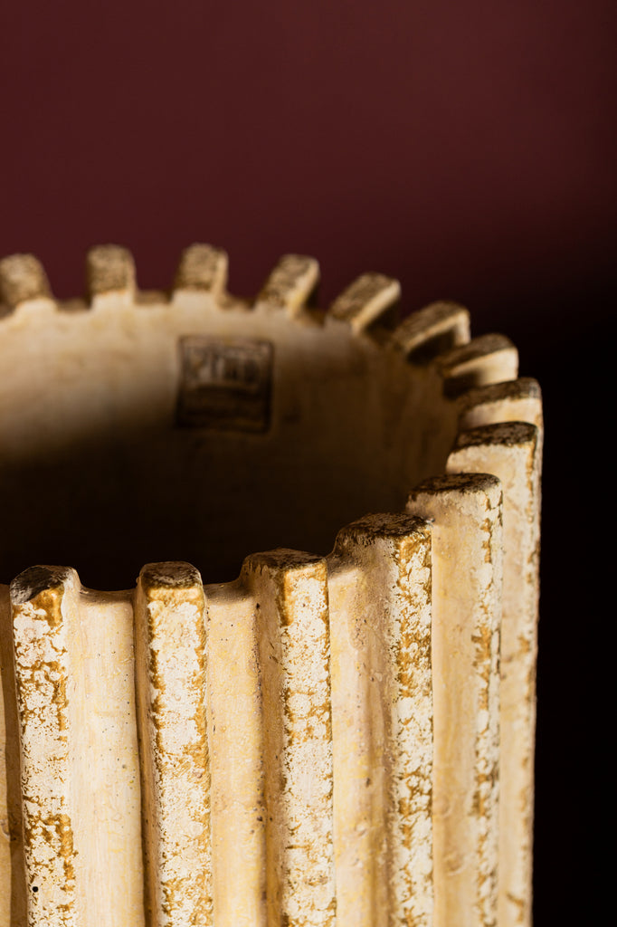 Geef je interieur een moderne uitstraling met deze prachtige Zariya plantenpot in crème. Deze grote, ronde cementpot heeft elegante geribbelde lijnen die zorgen voor een stijlvolle textuur. Met zijn hoge vorm (maat L) is deze pot perfect voor grotere planten en creëert hij een opvallend accent in elke ruimte.